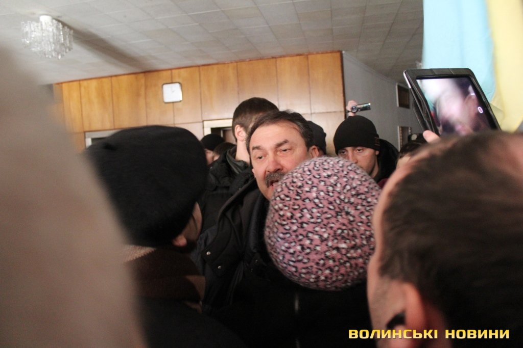 Повернувшись до Бориса Клімчука, активісти почули, що він не має наміру писати заяву. Лідери луцького Євромайдану застерігали губернатора, що їм складно стримувати людей, які вже тривалий час перебувають на морозі та готові штурмувати приміщення облради.