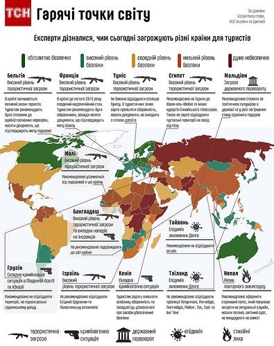Чим сьогодні загрожують різні країни для туристів. Інфографіка