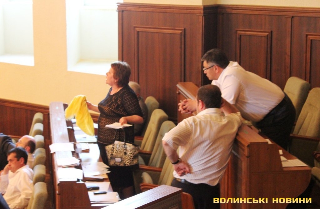 Також Раїса Кучмук вигукувала, що не хоче чути відповідь Бориса Загреви на питання, чому депутати не голосують за проект рішення. Голова облради таки надав можливість висловитися депутату.