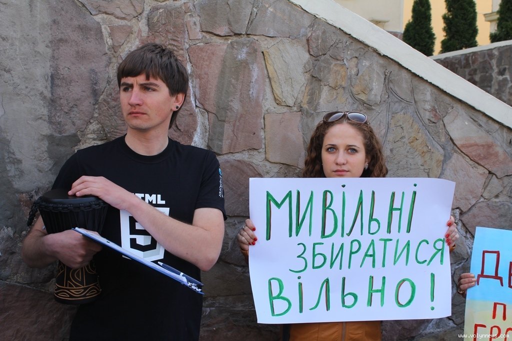 Депутати Луцької міської ради Андрій Осіпов та Андрій Козюра підтримали мітинг за мирні зібрання і пообіцяли проголосувати за скасування рішення виконкому.