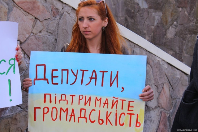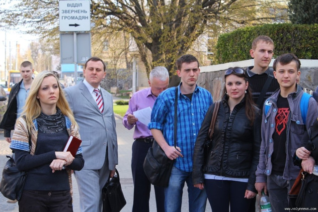 У рамках акції протесту виступив голова Волинської обласної молодіжноїа громадської організації «Асоціація Молодих Реформаторів (АМоРе)» Дмитро Безвербний. Він закликав депутатів проголосувати за скасування рішення виконкому міської ради під час сьогоднішньої сесії.