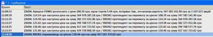 Під час аукціону було реалізовано 3,197 млн акцій за ціною 130,46 грн за штуку – вище за стартову ціну на 20%. На купівлю 25% акцій компанії було 2 претенденти.Покупець наразі невідомий.