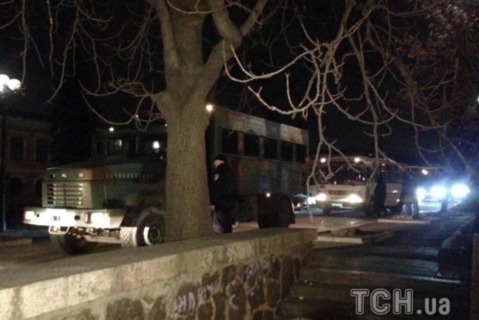 У ніч на неділю, 21 лютого, близько 2-ї години до центру міста приїхали машини з гвардійцями, повідомляє кореспондент ТСН.ua з місця подій. Вся техніка розмістилася біля Жовтневого палацу, розташованого біля центральноїплощі столиці.