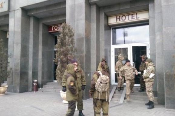 Заступник Міноборони запевнив, що до цих людей застосовування сили не буде. При цьому журналістів в готель члени "Радикальної правої сили" не впускали.