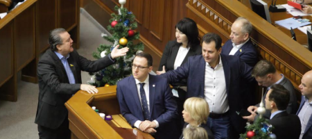Аби домогтися винесення на розгляд газового законопроекту, УКРОП заблокував трибуну.