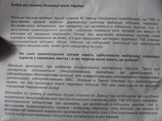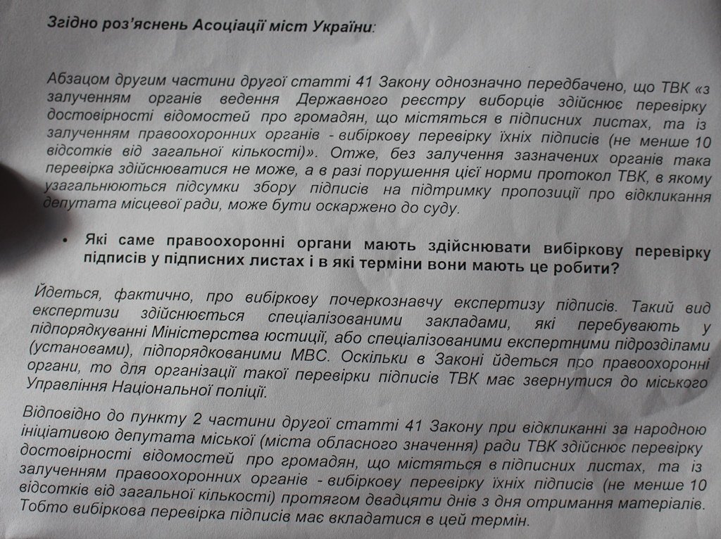 Також вона показала присутнім роз’яснення Асоціації міст України, де теж пропонують використовувати почеркознавчу експертизу як ефективний та законний спосіб перевірки.ЧИТАТИ ЩЕ: ПРОКУРАТУРА РОЗСЛІДУЄ СПРОБУ ВІДКЛИКАННЯ ЛУЦЬКИХ ДЕПУТАТІВ