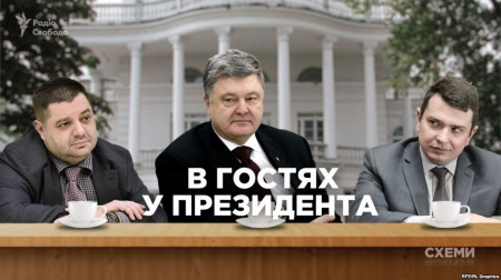 Журналісти програми «Схеми» (спільного проекту Радіо Свобода і телеканалу «UA:Перший») неодноразово розповідали про те, що президент України Петро Порошенко афішує далеко не всі свої зустрічі. Показували, як деяких олігархів на територію адміністрації президента завозять на службових автівках, щоб їх не помітили журналісти. Зрештою, їм стало відомо, що Порошенко іноді проводить зустрічі, які не хоче афішувати, просто у себе вдома, пізно ввечері.