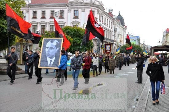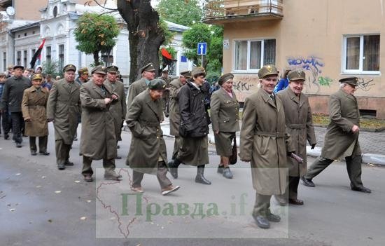 Невеликий за кількістю учасників марш пройшов і в Івано-Франківську. Тут ветерани та лідери правих партій і громадських організацій, молодь та пластуни провели на Вічевому майдані урочисте віче. Священики відслужили екуменічний молебень до Божої матері, Покрови Богородиці.