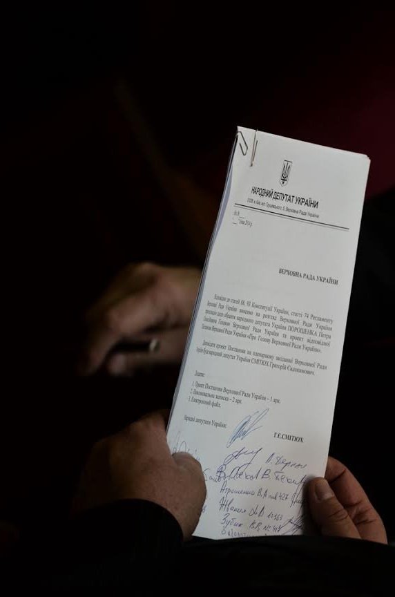 Народний депутат Григорій Смітюх вніс на розгляд Верховної Ради України постанову про обрання головою Верховної Ради України Петра Порошенка, інформує Gazeta.ua.Раніше повідомлялося, що новим головою Верховної Ради може стати нинішній заступник спікера парламентру, нардеп від "Свободи" Руслан Колушинський. "За моєю інформацією, на спікера Ради опозиційні фракції пропонують Кошулинського", - написав у Facebook депутат Олег Ляшко, інформує ТСН.