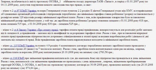 Подейкують, що фірма діяла напівлегально. В Єдиному реєстрі судових рішень міститься постанова Ковельського міськрайонного суду про притягнення до адміністративної відповідальності директора ТзОВ «Лапаст» за порушення умов трудового договору і оплати праці.