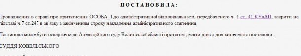Щоправда, провадження у справі закрили у зв'язку з закінченням строку накладення адміністративного стягнення.