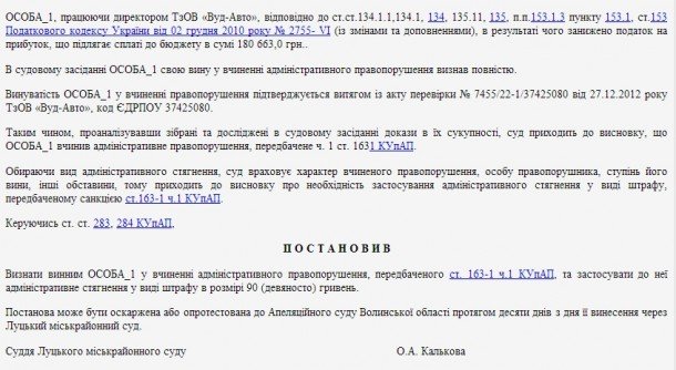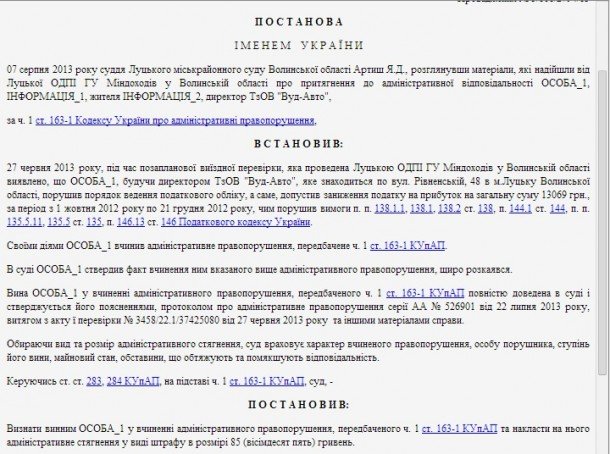 У 2013 році директора та головного бухгалтера ТзОВ "Вуд-авто" притягали до адмінвідповідальності за заниження розміру податків.