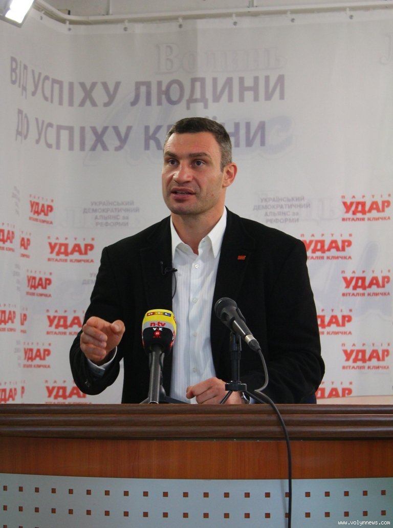 У цьому запевнив лідер партії «УДАР» Віталій Кличко під час свого візиту до Луцька 23 жовтня.