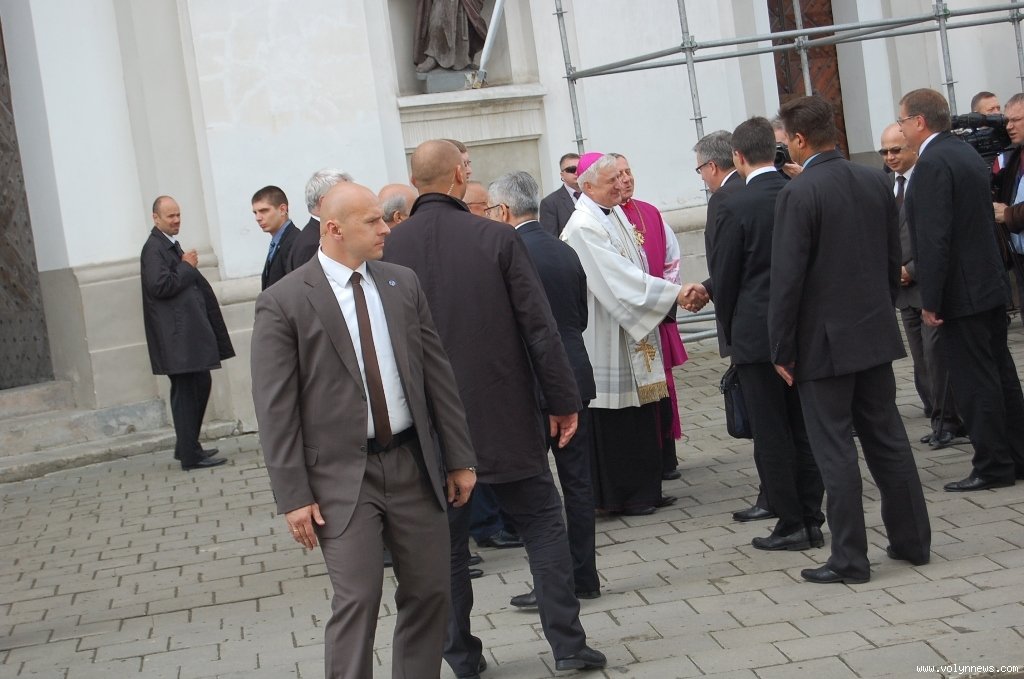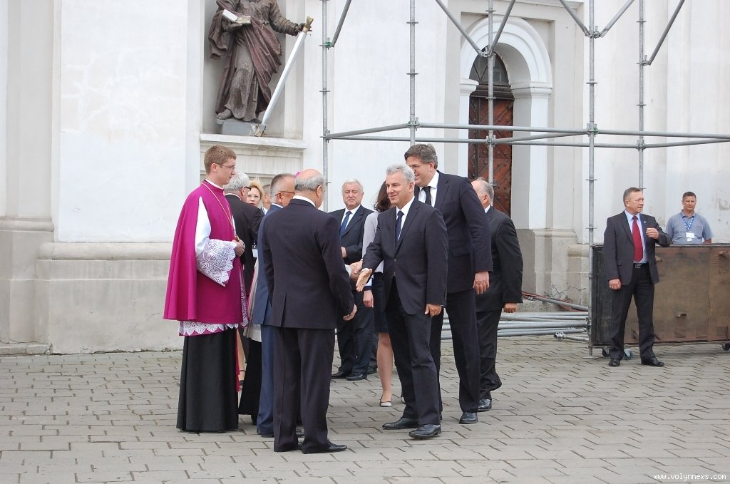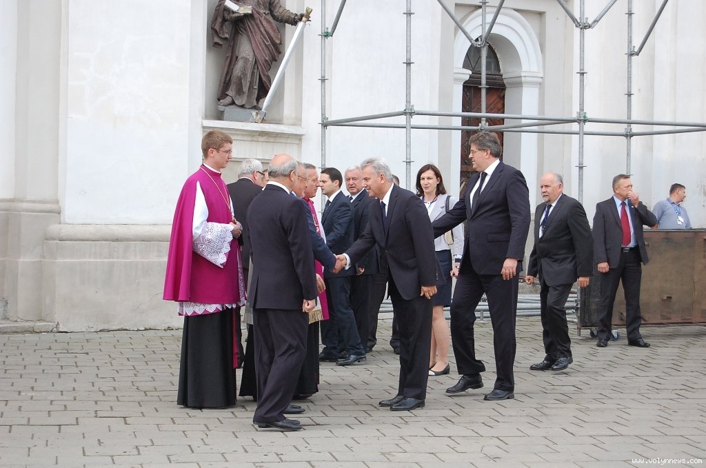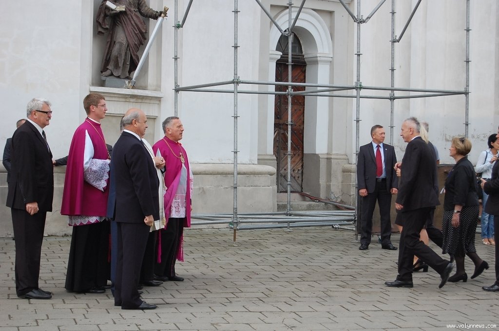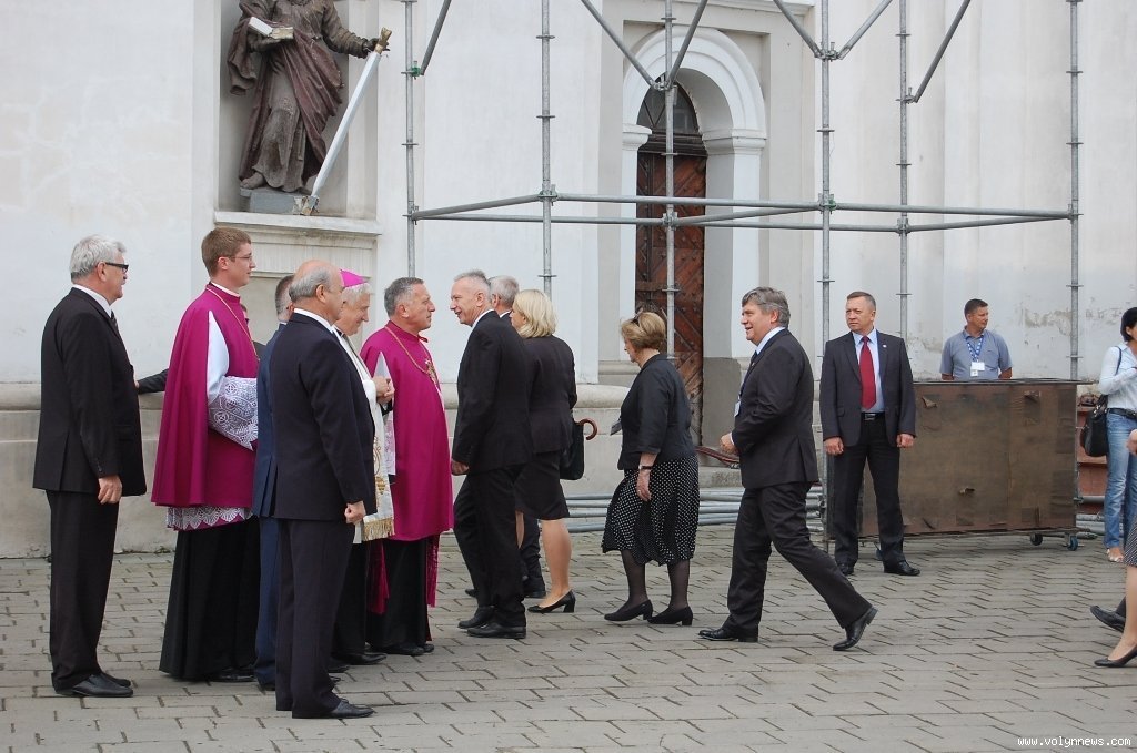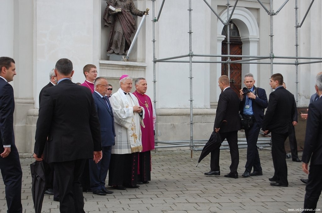 Президента і Віце-прем’єра зустріли представники волинської влади та духовенства. Зокрема, серед них були голова Волинської ОДА Борис Клімчук, голова Волинської облради Володимир Войтович, єпископ Станіслав Широкорадюк. Серед тих, хто прибули на месу, була й Генеральний консул Генерального Консульства РП у Луцьку Беата Бживчи.