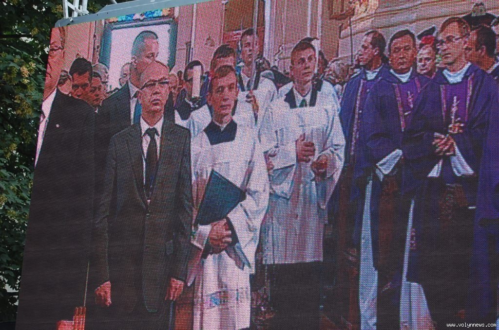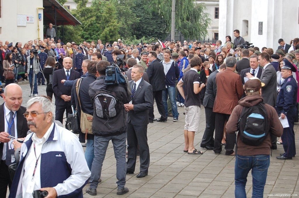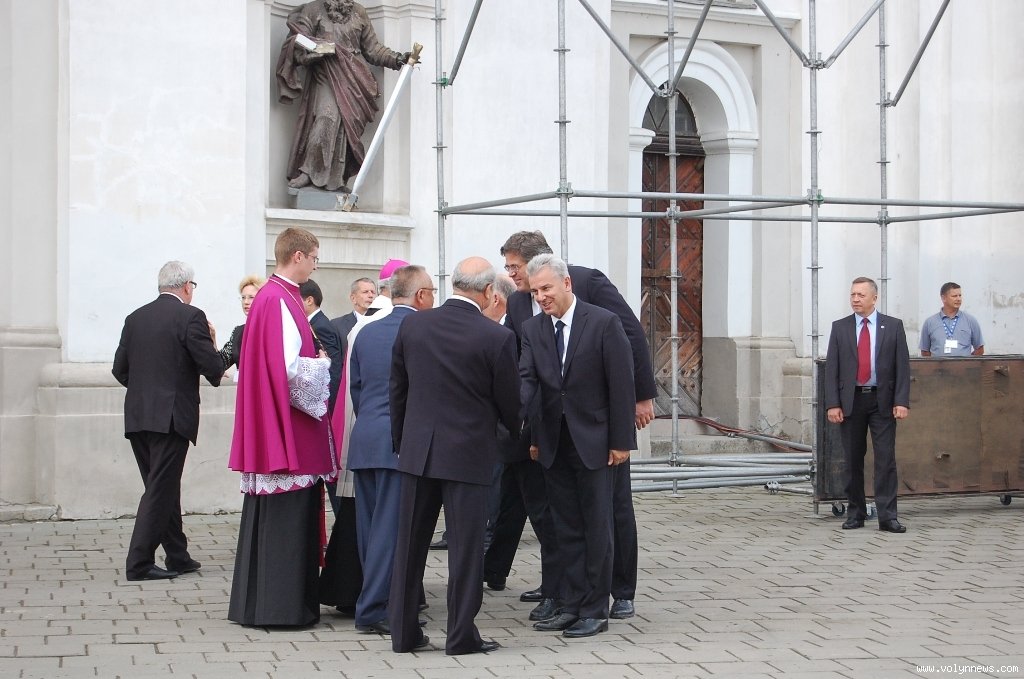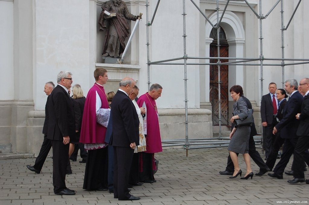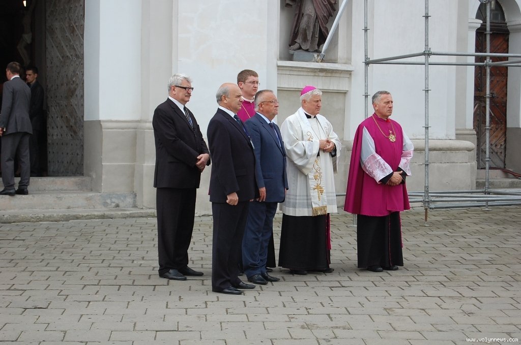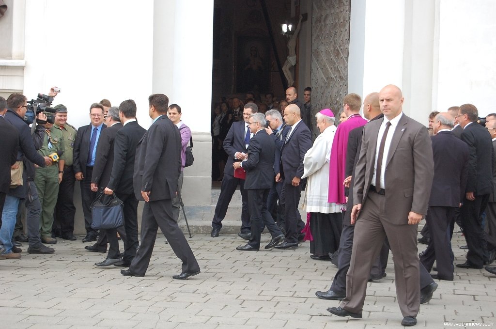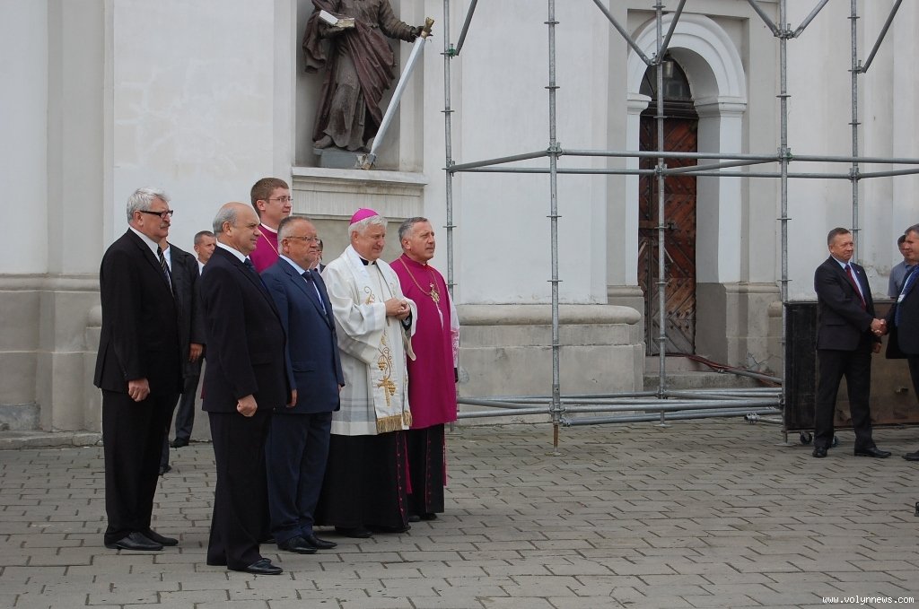 Президента і Віце-прем’єра зустріли представники волинської влади та духовенства. Зокрема, серед них були голова Волинської ОДА Борис Клімчук, голова Волинської облради Володимир Войтович, єпископ Станіслав Широкорадюк. Серед тих, хто прибули на месу, була й Генеральний консул Генерального Консульства РП у Луцьку Беата Бживчи.