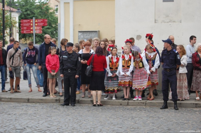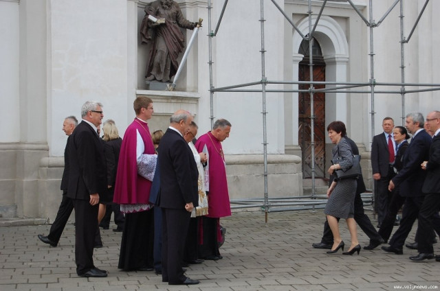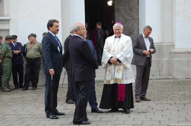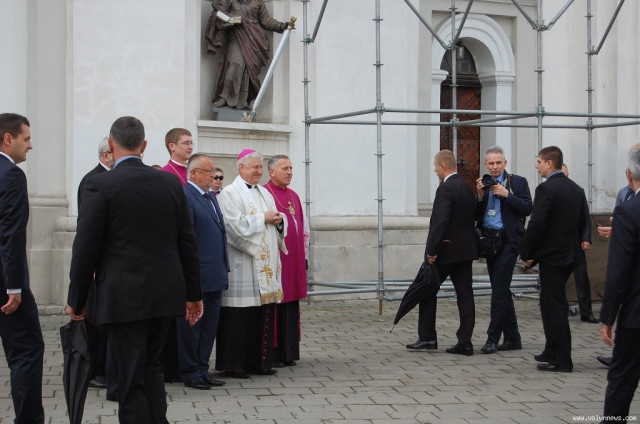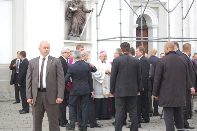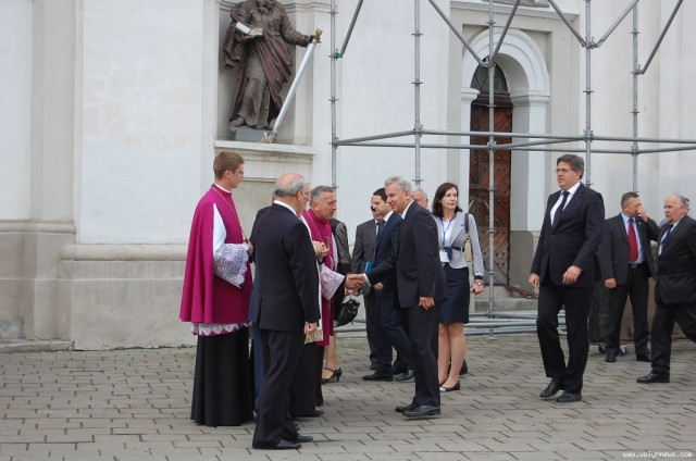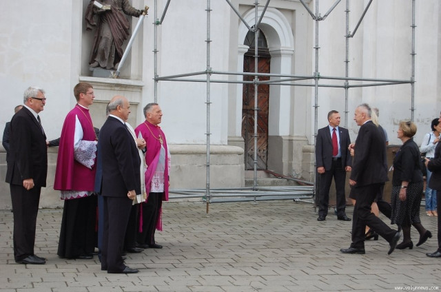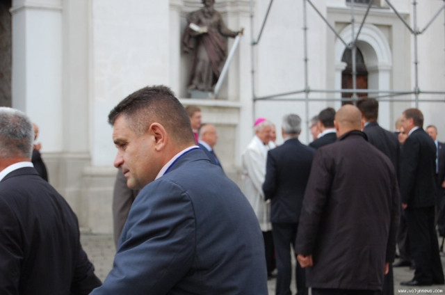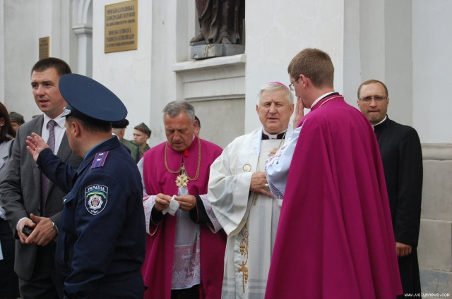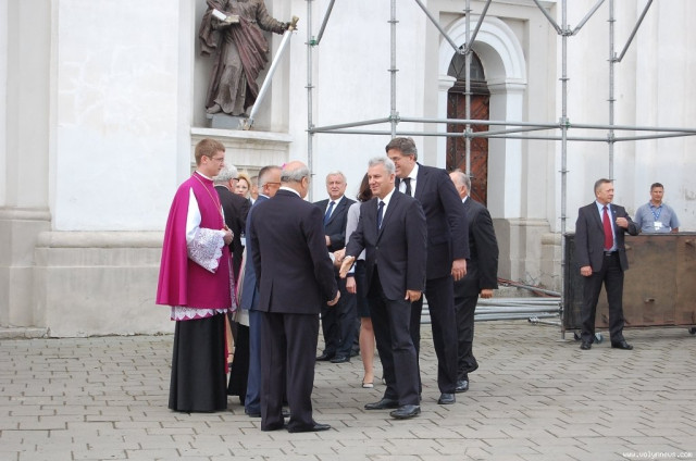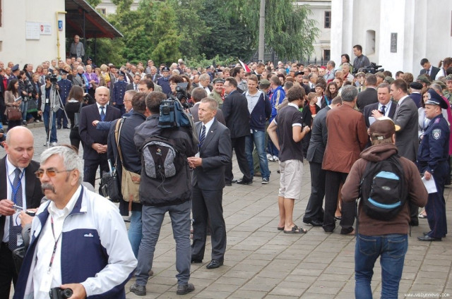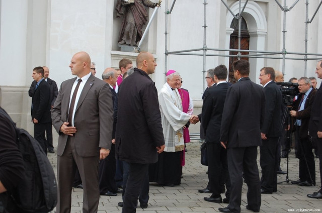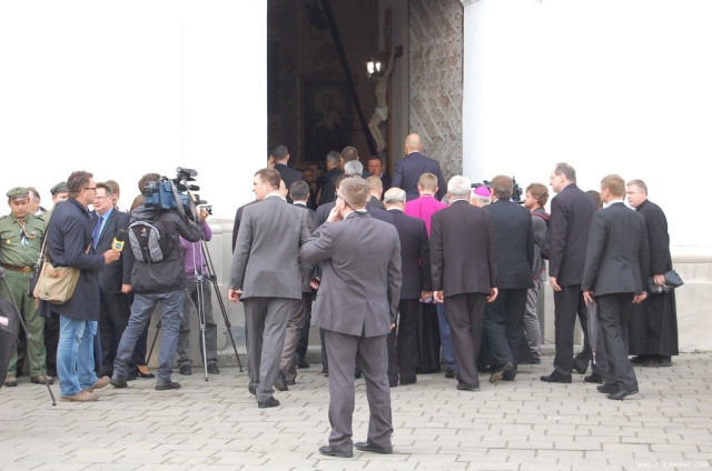 Через деякий час після цих слів до костелу підійшли Броніслав Коморовський та Костянтин Грищенко у супроводі охорони. До слова, окрім особистої охорони, безпеку високопосадовців берегли й правоохоронці й «силовики», які просили людей зійти з проїжджої частини на пішохідні тротуари.