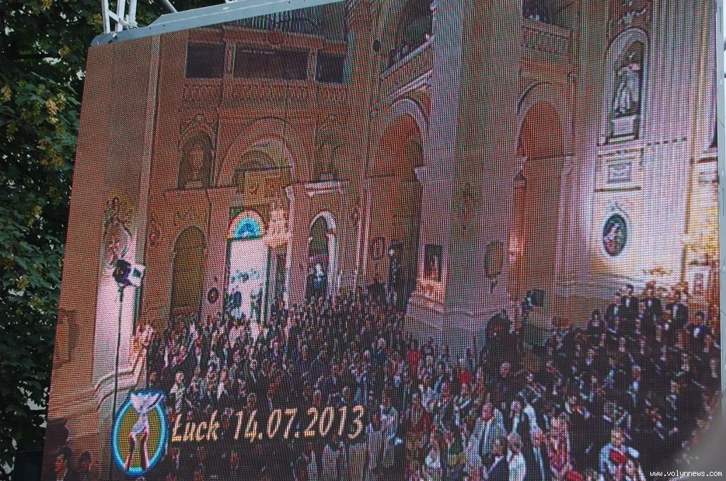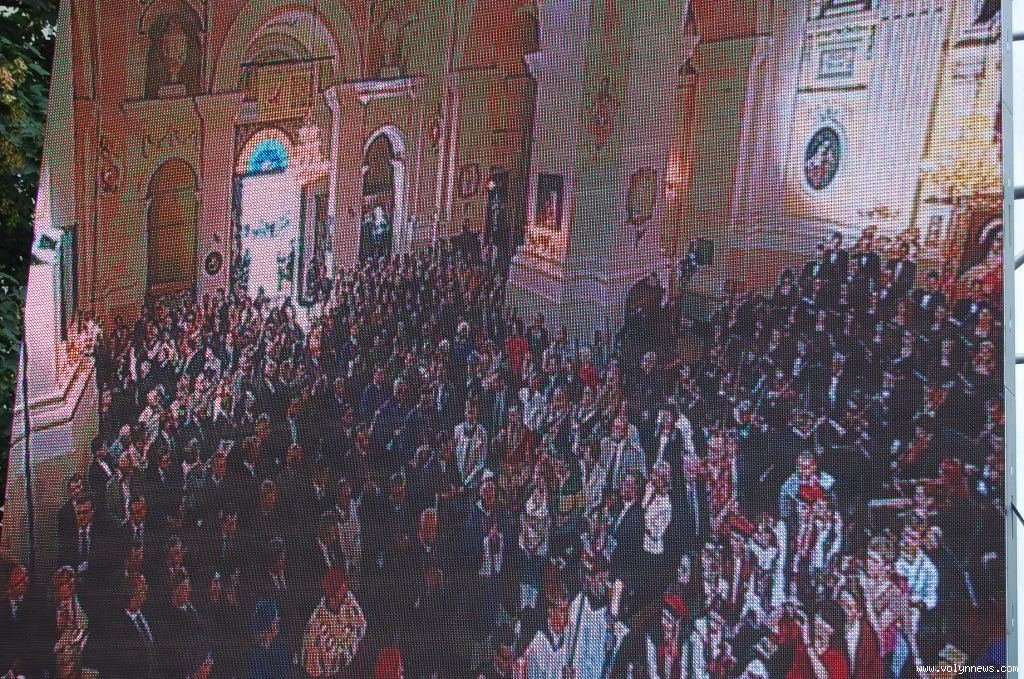 Уже біля костелу до прибуття польського президента та українського віце-прем’єра та початку богослужіння речник зауважив, що радий вітати усіх паломників, які зібралися сьогодні у Луцьку. Окрім того, він виголосив повідомлення для прийдешніх поколінь від імені усіх церков: «Ненависть і насильство – шлях до деградування людини і народу, натомість прощення, братерство, співчуття, допомога та любов ведуть до культури людського співіснування».