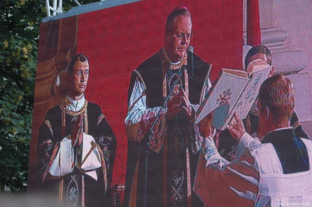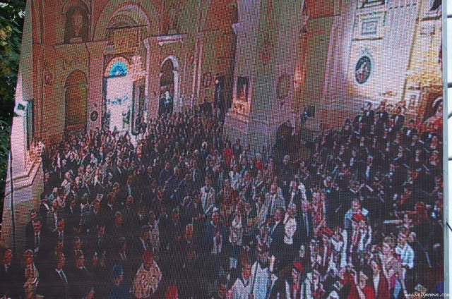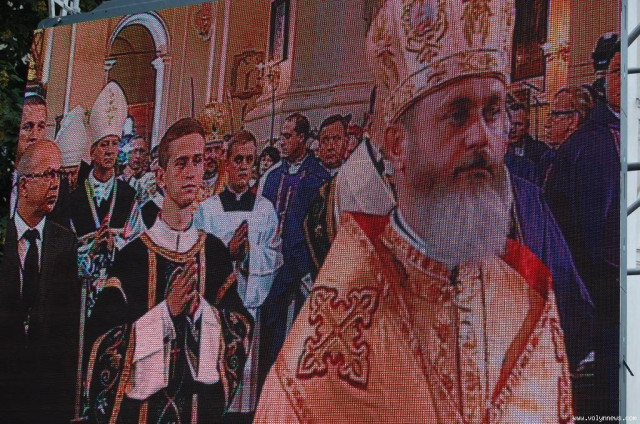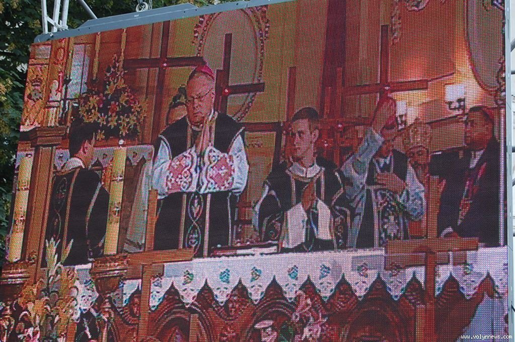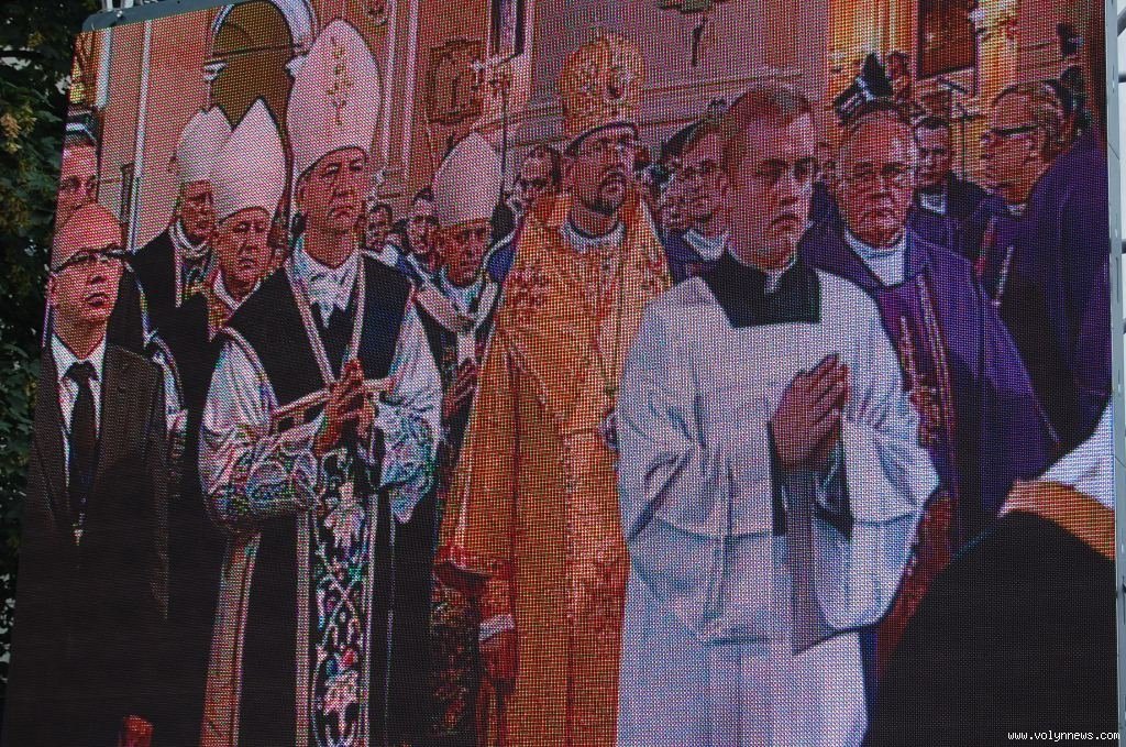 Вже об 11 годині розпочалося урочисте богослужіння з виступу хору у супроводі оркестру. Очолив літургію Апостольський Нунцій в Україні Томас Едвард Ґалліксон.