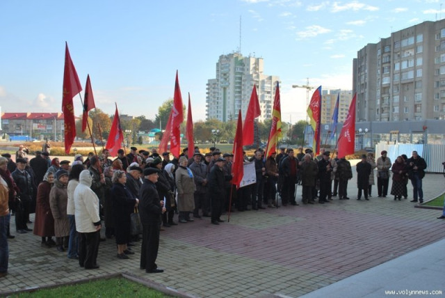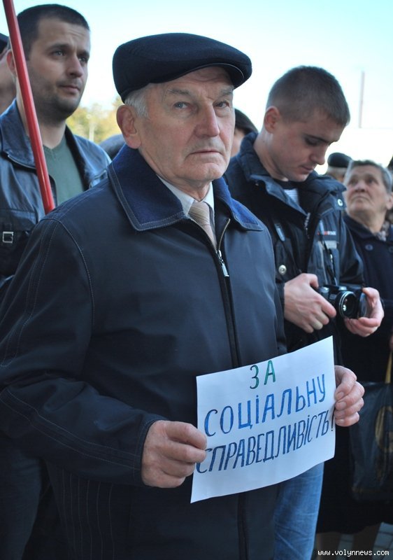 Висловити свою незгоду з діями влади та бідністю, яка панує в Україні прийшло кілька десятків людей. Це переважно представники партій лівого спрямування, організація дітей війни, луцький комсомол та компартія. Серед протестуючих найбільшу частку становлять люди поважного віку.