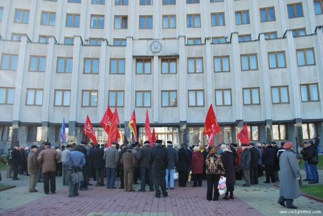 Пікет волинської облдержадміністрації з нагоди Всесвітнього дня проти бідності 17 жовтня організували представники партій лівого спрямування.