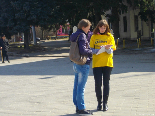 Акцію проводить коаліція виборчих ініціатив «Дзвін». Такий захід також пройшов ще в 300 містах України.