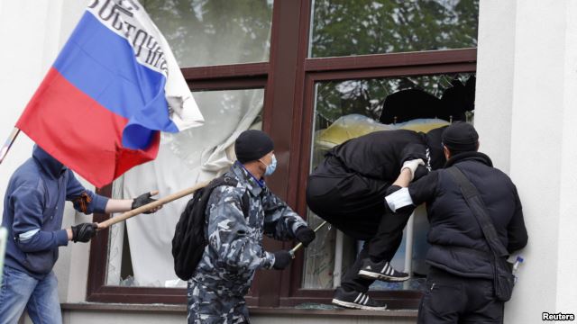 Люди в масках, камуфляжі, з битами і арматурою в руках захопили будівлю Луганської обласної держадміністрації.