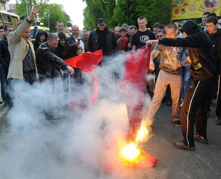 Молодці! Але забули одну річ: зло завжди породжує зло - проти лома є завжди інший лом! Вічна непримиримість саме західних українців які себе називають націоналістами, а ведуть себе як нацисти, їх бажання знищити на свому шляху всіх хто має відмінні від них погляди і породила сталінські репресії не тільки проти них, а й проти звичайних нормальних українців, бо на лобі не написано. Тепер своєю поведінкою вони бажають нових репресій? Адже разом з ними обов'язково знову постраждають мирні люди. Люба влада в любій нормальній країні зобов'язана боротись з нацизмом...