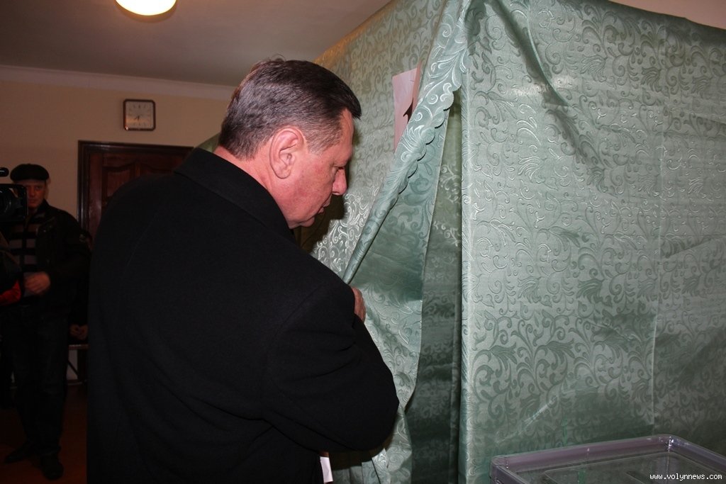 На виборчій дільниці №070521 у селі Зміїнець мер Луцька з’явився о 13:50. Проголосував Микола Романюк швидко і вже пізніше зазначив, що настрій у нього хороший.