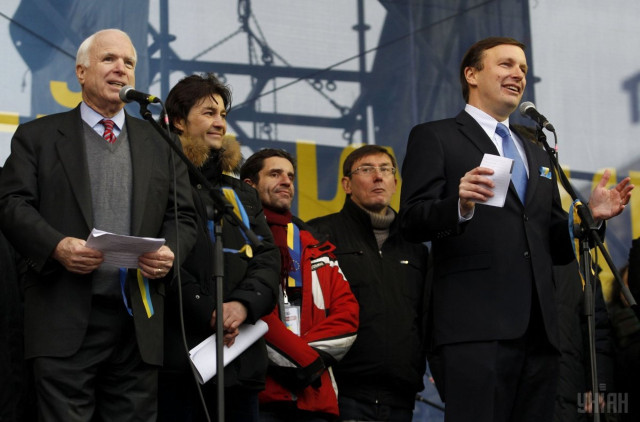 Після розгону Євромайдану в Києві, Маккейн завітав до України. У грудні 2013 року він побував у наметовому містечку і зі сцени звернувся до мітингувальників із словами підтримки.
