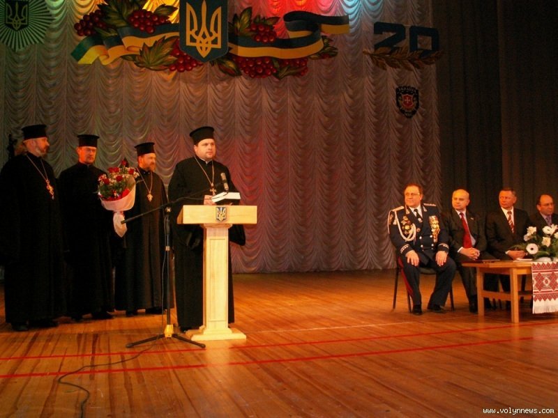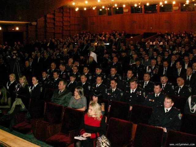 Аби привітати правоохоронців в обласному музично-драматичному театрі зібралися представники релігійних конфесій та всіх гілок влади. Біля входу стояли курсанти Луцького правничого ліцею з посиленою фізичною підготовкою, які віддавали честь офіцерам.