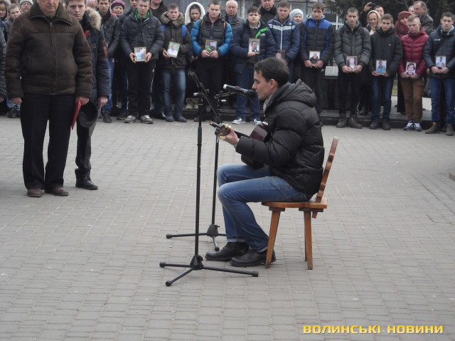 Тужлива «Пливе кача» - пісня-реквієм за тими, кому жорстока рука злочинного режиму вкоротила віку, скликала сьогодні сотні володимир-волинців на центральну площу міста аби вшанувати Героїв Небесної Сотні.