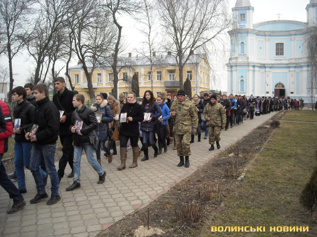 Хресною ходою від собору Різдва Христового і до центрального майдану міста студенти місцевих навчальних закладів пронести портрети усіх загиблих Героїв Небесної Сотні.