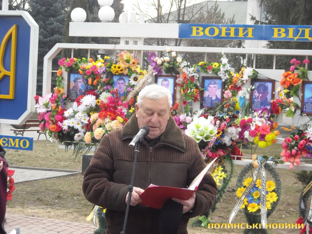 Заступник голови Володимир-Волинської районної ради Павло Карпюк наголосив, що не тільки Герої Небесної Сотні, але й воїни, які загинули в АТО, віддали заради боротьби за Україну своє життя.