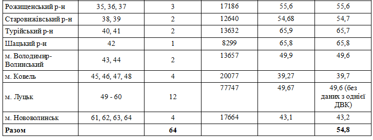 Загалом на Волині волевиявлення здійснили 424 500 виборці з 773 672.