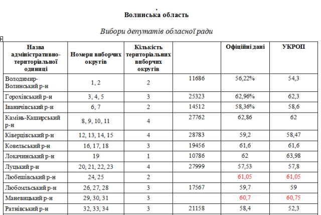 Порівняльні цифри:Дані по Волині від партії УКРОП – паралельний підрахунок явки виборців: