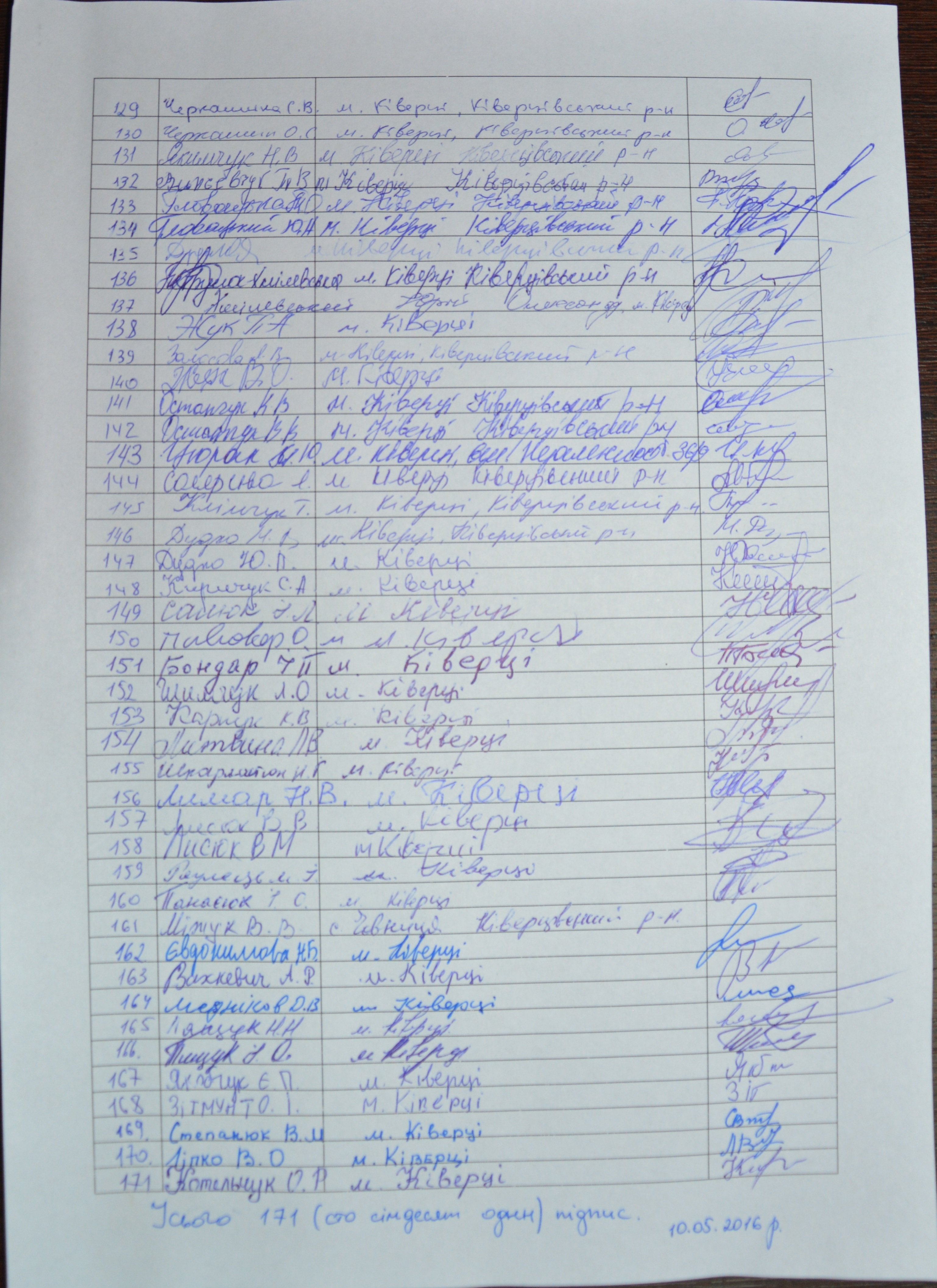 Ясна річ, громада поліських районів не заглиблюється у суть таких процесів. Аби людям пояснили, що ж врешті відбувається у їхньому окрузі й чому вони досі лишалися без нардепа, активісти регіону надіслали звернення голові Верховної Ради Андрію Парубію. Під листом – 171 підпис.