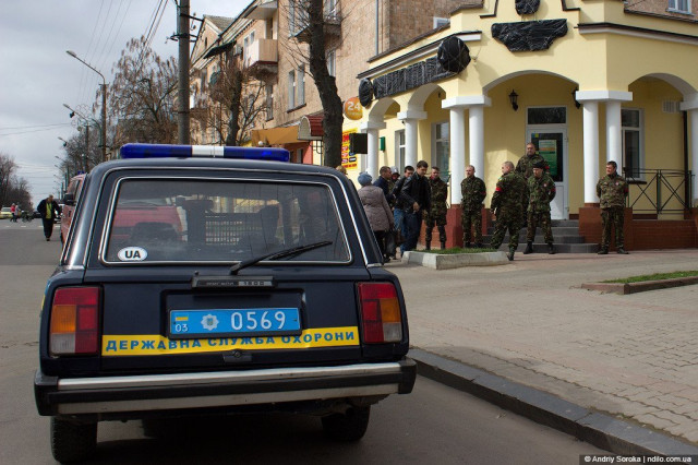 Чудики это Украинский банк контакты с Россией минимальные. Там видимо за помещение идет борьба так как в Луцке возле ВНУ тоже отделение сбербанка и кстати рядом с кафе евроинтеграторов и ни кто не блокирует, а тут прям блокада фрицами Ленинграда смешно.