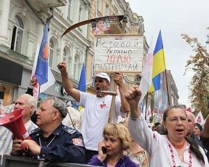 Після цього люди сіли та тротуар, тримаючи в руках плакати з написами: "Ми не чинимо опір!", "Україні - долю, політв'язням – волю!", а також плакати з переліком статей Конституції, які надають громадянам право на мирні збори.