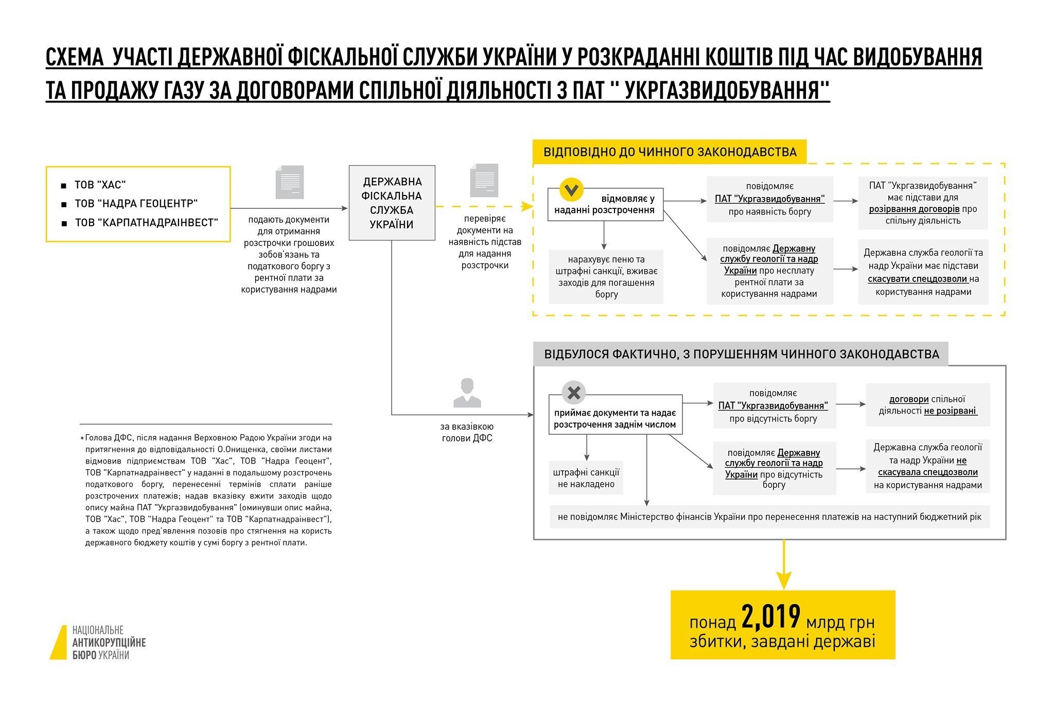 Слідство вважає, що голова Державної фіскальної служби протягом 2015-2016 років, діючи в інтересах нардепа Олександра Онищенка, особисто прийняв безпідставні та незаконні рішення про розстрочення податкового боргу та зобов'язань ТОВ «Фірма «Хас», ТОВ «Карпатнадраінвест», ТОВ «Надра Геоцентр». Ці рішення Насіров прийняв із порушенням визначеної законом процедури, тобто за відсутності належного обґрунтування та законних підстав, що спричинило державі підтверджену висновком експерта шкоду близько 2 млрд грн.