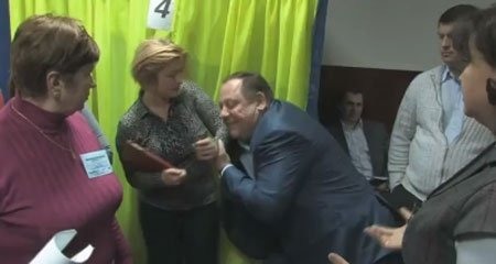 Нардеп від Партії регіонів Петро Мельник намагався силою витіснити з дільниці депутата від НУНС Ірину Геращенко.