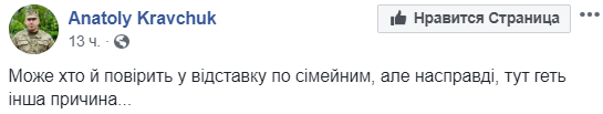 «Хтось, може, і повірить у відставку за сімейними обставини, але насправді, тут зовсім інша причина».