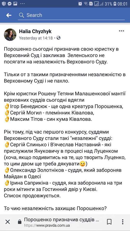 Вчора він призначив юриста Roshen Малашенкову головою Верховного суду. Всього призначив 75 суддів разом із родичами Ківалова і закликав Зеленського «не втручатися в незалежний суд».
