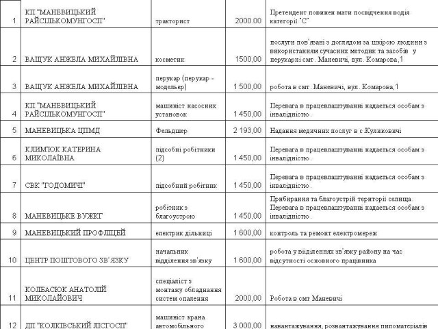 Насправді, як стало відомо з повідомлення Маневицького районного центру зайнятості, місцеві вакансії не комплектуються роками і мають дуже низький рівень зарплати.А зі слів голови Маневицької РДА Андрія Линдюка, лише за один місяць в самих Маневичах працевлаштовано 100 осіб. Щоправда, про який саме період і на які вакансії працевлаштовано стільки населення – не уточнив. Місцеві жителі такі слова одразу ж піддали сумніву і критиці.