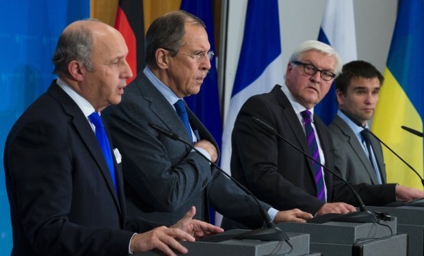 Міністри закордонних справ України, Німеччини, Франції та Росії закликають всі сторони на сході України припинити військові дії та відвести важке озброєння від лінії розмежування у відповідності до Мінського меморандуму від 19 вересня, а Тристороння контактна група повинна зібратися для розроблення механізмів виконання цих домовленостей.