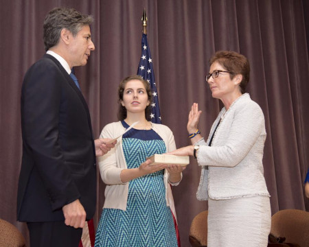 "Із нетерпінням очікуємо на можливість привітати нового посла США Марі Йованович в Україні наступного тижня! Вона вже була приведена до присяги в Державному департаменті і представить вірчі грамоти президенту Порошенку по приїзду в країну", – йдеться в повідомленні.