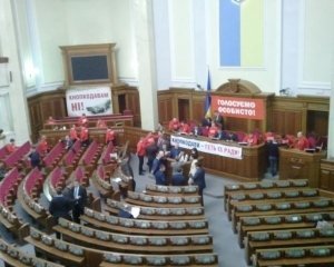 Три опозиційні фракції продовжують блокувати трибуну й президію Верховної Ради України.