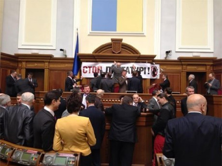 Опозиція знов заблокувала Раду. ФОТО. ВІДЕО