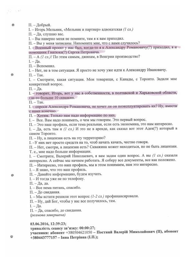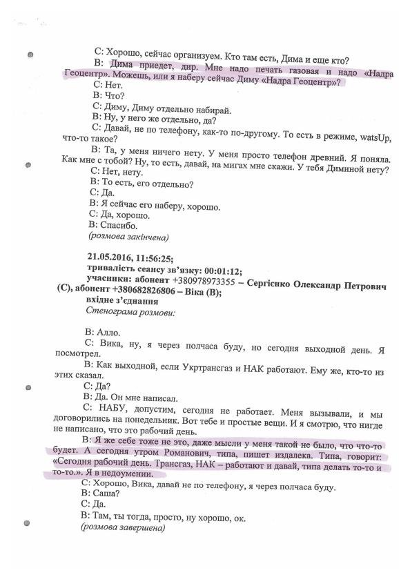 Вдалося з'ясувати, що одна зі співрозмовників, яка називається Вікторією, насправді - Мар'яна Гречанюк. Вона - представник "Нафтогаз Трейду" та "Газтранспроекту", які купували природний газ на фіктивних аукціонах.