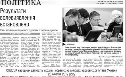 Результати виборів народних депутатів України, що їх оголосила ЦВК, оприлюднені в сьогоднішньому номері газети Верховної Ради «Голос України».