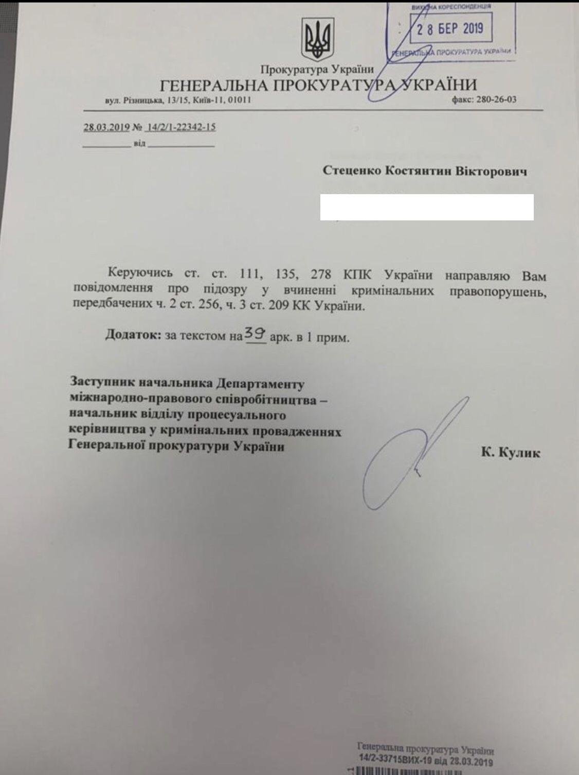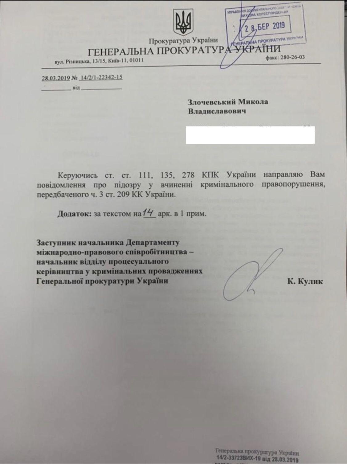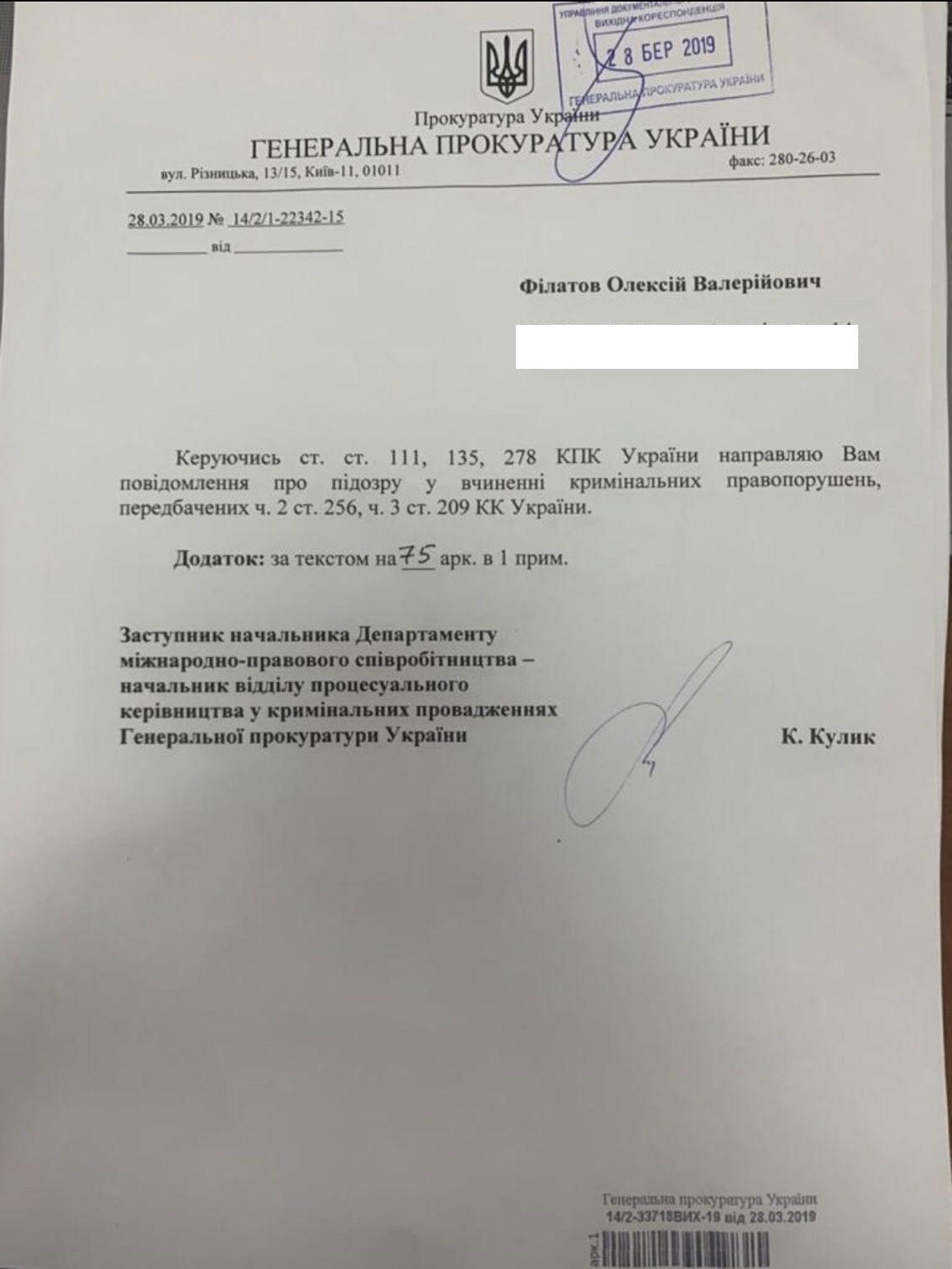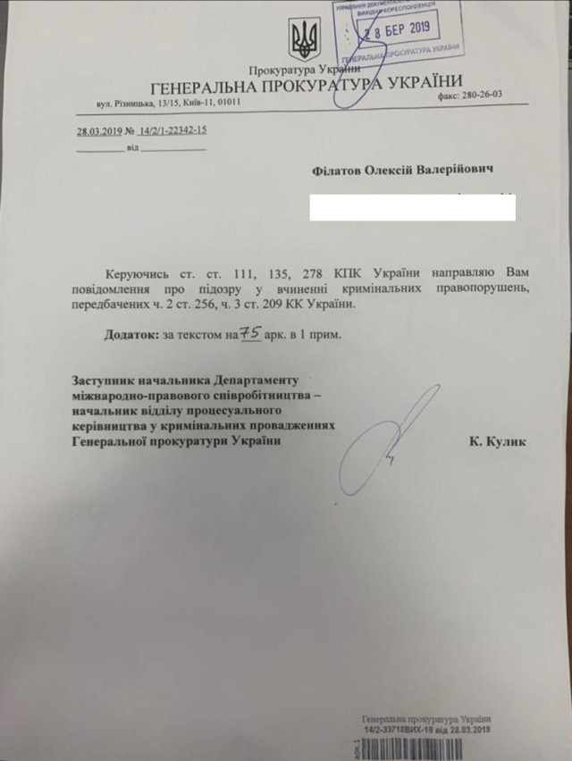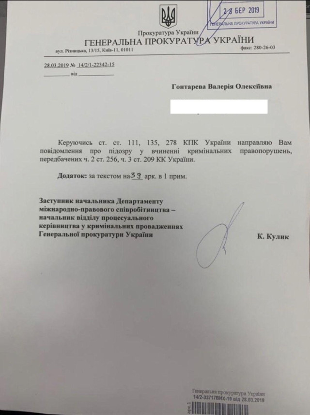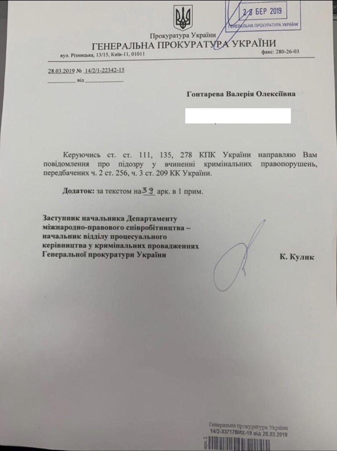 У ЗМІ з'явилися фотокопії підозр, які були пред'явлені Генпрокуратурою людям з близького оточення Петра Порошенка: Валерії Гонтаревій, заступнику голови АП Філатову та іншим.